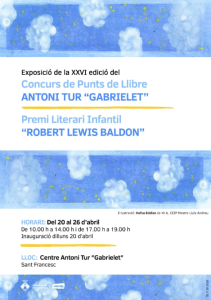 El centre Antoni Tur “Gabrielet” acull avui la inauguració de la 26a edició del concurs de punts de llibre ‘Antoni Tur Gabrielet i del premi literari ‘Lewis Baldwin’, una exposició que forma part de la programació de Sant Jordi i que es pot visitar fins al 26 d’abril. La mostra reuneix els treballs elaborats per alumnes de diferents centres educatius de Formentera i combina creativitat artística amb foment de la lectura.