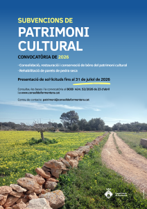 L’Àrea de Patrimoni del Consell de Formentera ha publicat al Butlletí Oficial de les Illes Balears (BOIB núm. 52, de 23 d’abril de 2026), la convocatòria de subvencions per a l’any 2026 destinades a la conservació, restauració i posada en valor dels béns del patrimoni cultural, així com a la rehabilitació de parets de pedra seca a l’illa.