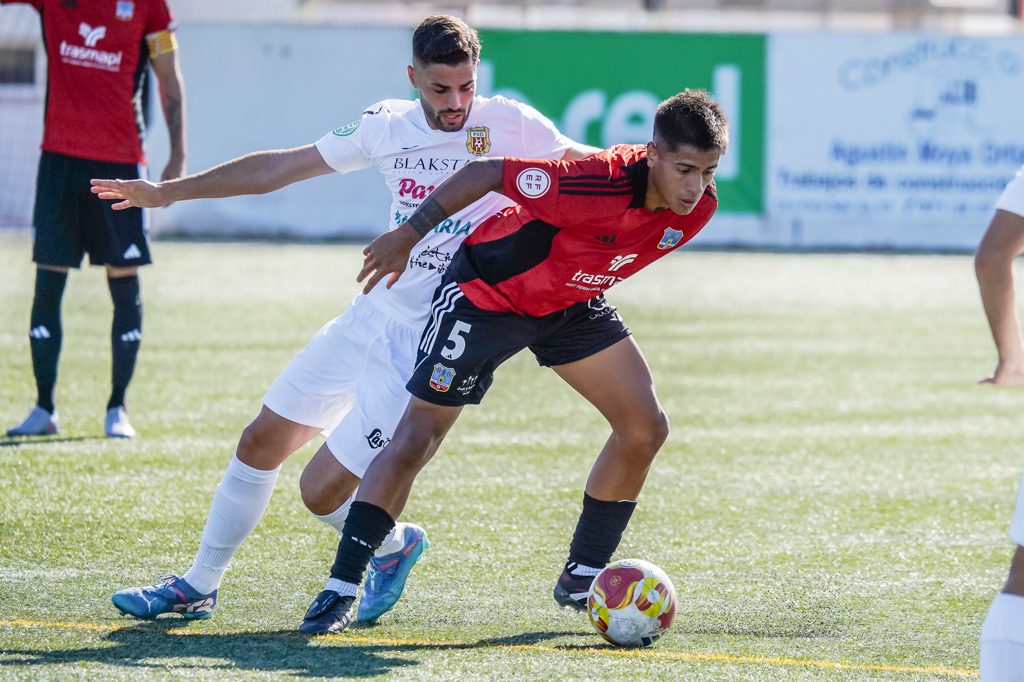Un Juaco estelar lluita una pilota al mig del camp (Foto: Pep Toni Bartolomé Tur)