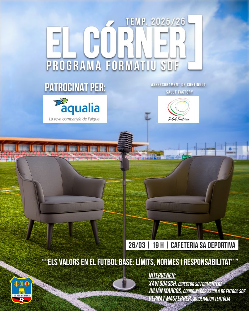 Segons informa la SD Formentera en un comunicat, el club reprén aquesta temporada el cicle formatiu “El Córner”, un espai de trobada i reflexió orientat a aprofundir en els valors del futbol base i en la importància dels hàbits saludables en la formació dels més joves.